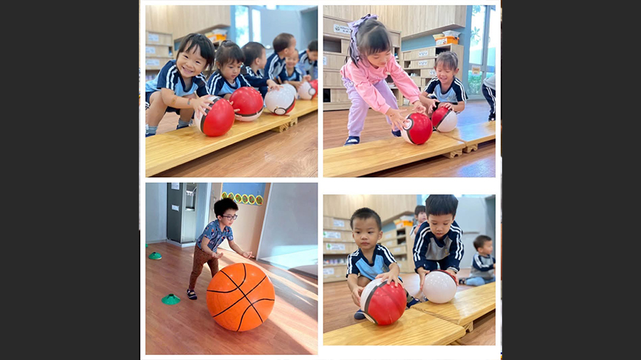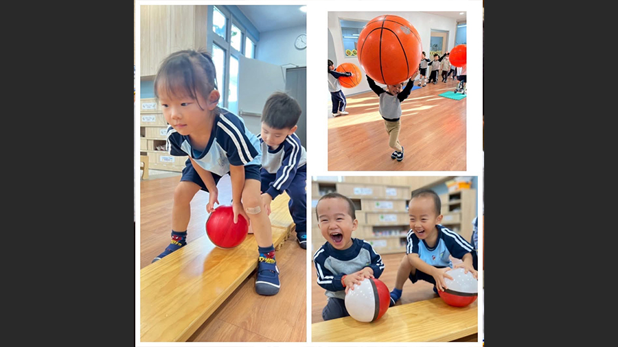 大球、小球在孩子們的手中滾動、拋擲、甚至頂在頭上玩耍,笑聲此起彼落。在遊戲中,孩子們不僅訓練了手眼協調與身體控制,更學會了如何合作、等待與分享。