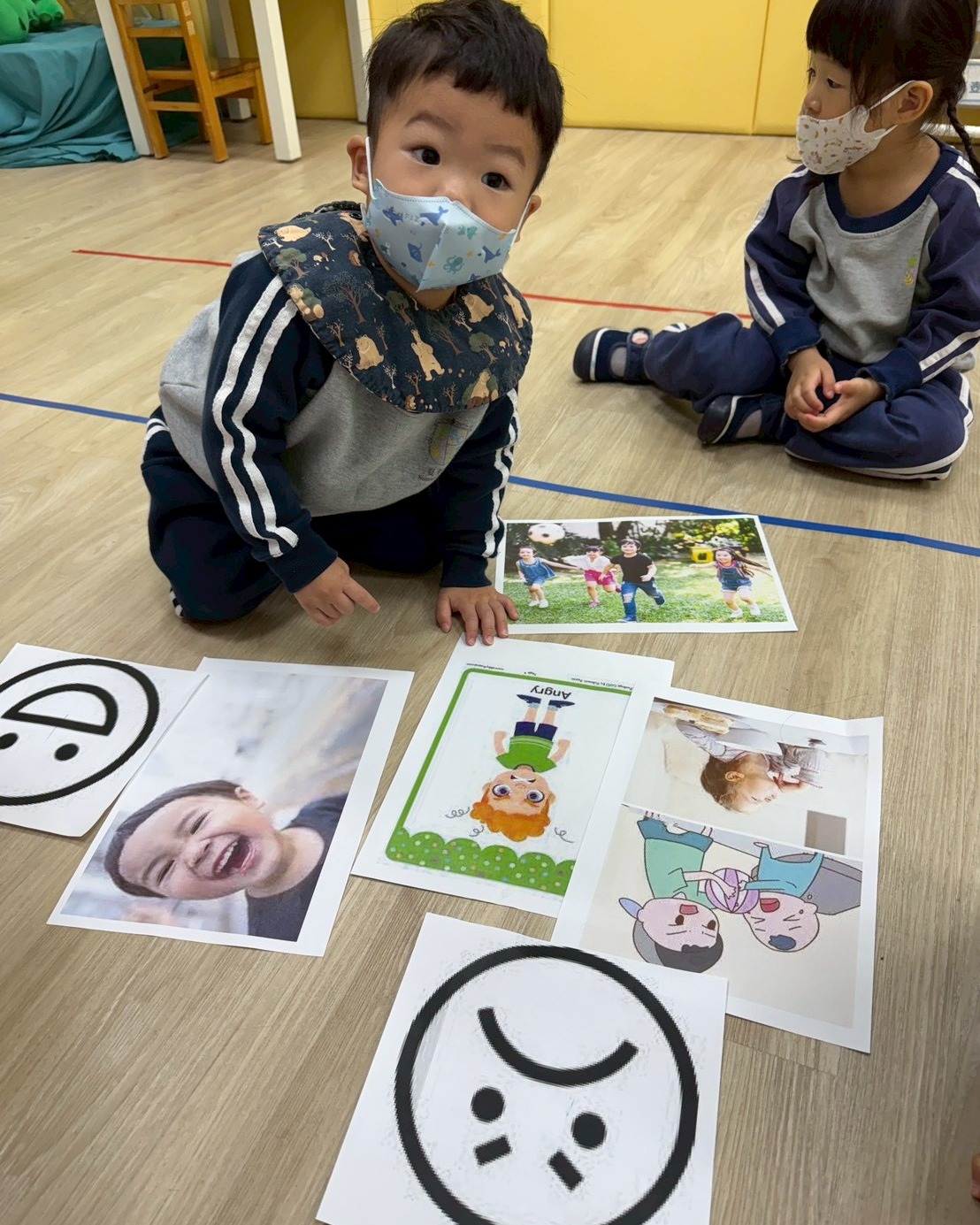在幼幼班學習中,透過故事、遊戲與討論,孩子能認識開心、生氣、難過等情緒,並學習用語言、表情或圖卡表達感受。同時引導孩子觀察他人情緒、培養同理心,學習適當回應。