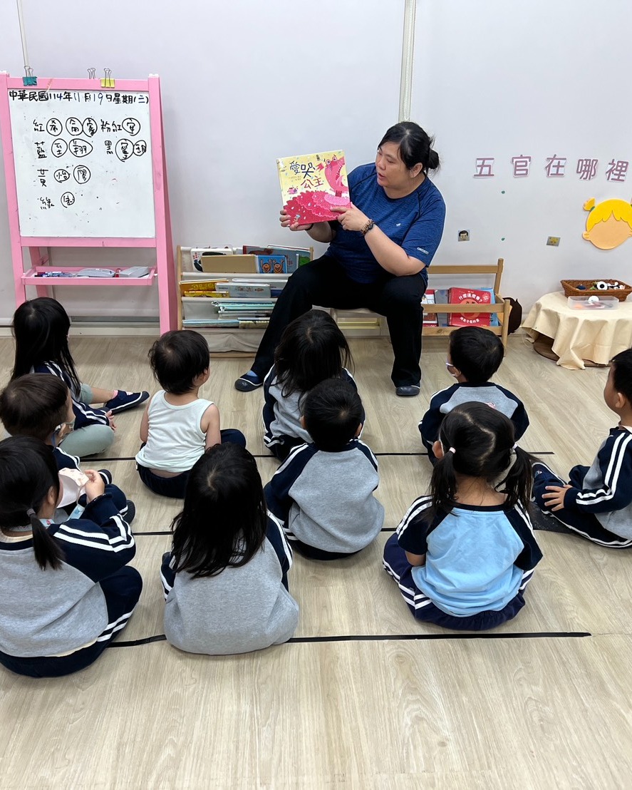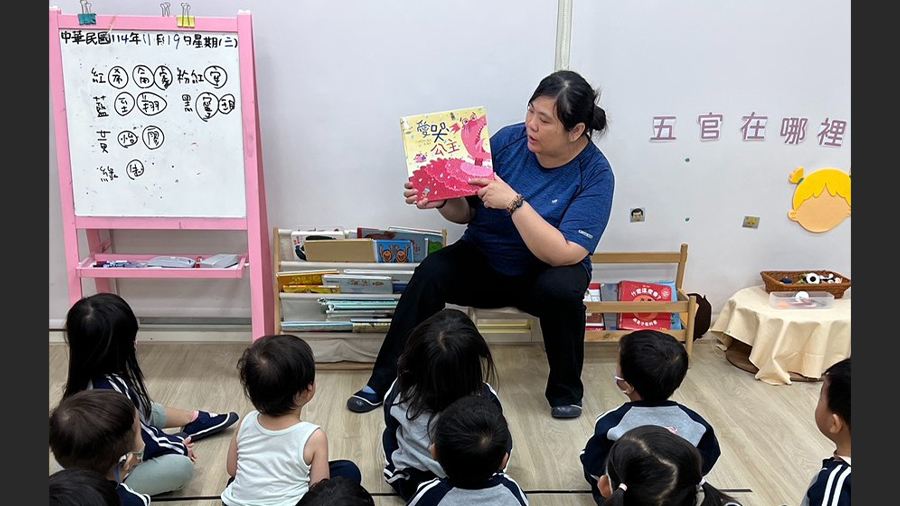 護理師帶著孩子們一起閱讀眼鏡公主的繪本,