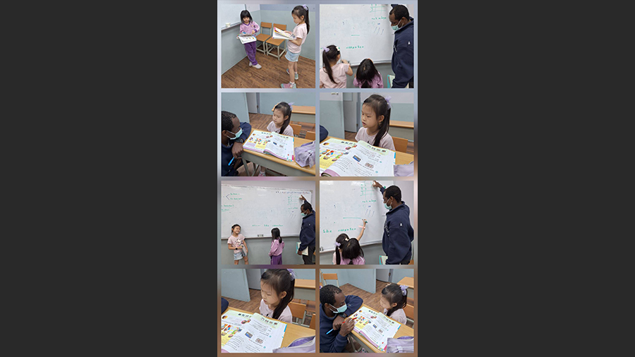 Teacher Chris has magical power that always makes children laugh and enjoy English class, especially in his phonics class, children always love to express themselves in English and talk with teacher.