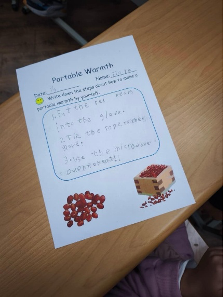 We used red beans to make our own portable warmth today.It’s a natural way to keep our hands warm and it’s eco-friendly.